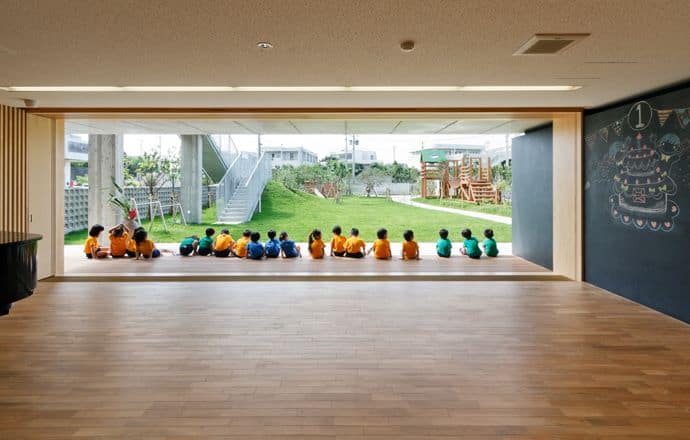 מבנה גן הילדים Hanazono תוכנן על ידי המשרדים היפניים Hibino Sekkei ו- Youji no Shiroהמתמחים בעיצוב עבור ילדים, והוא ממוקם באחד מאיי מיאקו שביפן. מזג האוויר באזור נוטה להיות סוער וסופות טייפון אינן נדירות בו, לכן המבנה תוכנן כך שיוכל להגן על הילדים הצעירים מהגשמים, הרוחות והסחף.